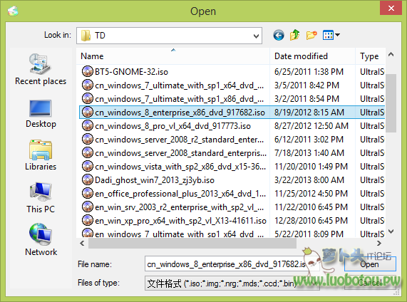 2)选择下载的Win镜像文件