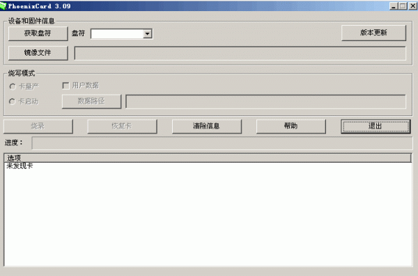 鼠标单击该按钮开始进行卡的烧写,烧写过程不要做其他操作。(会清除卡上的数据, 操作前请备份卡上的重要数据)