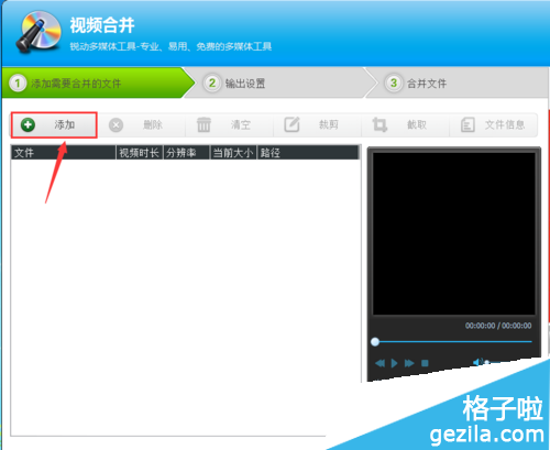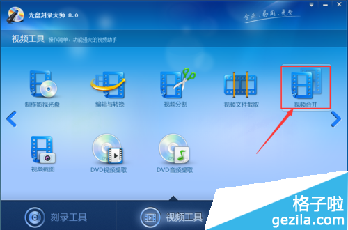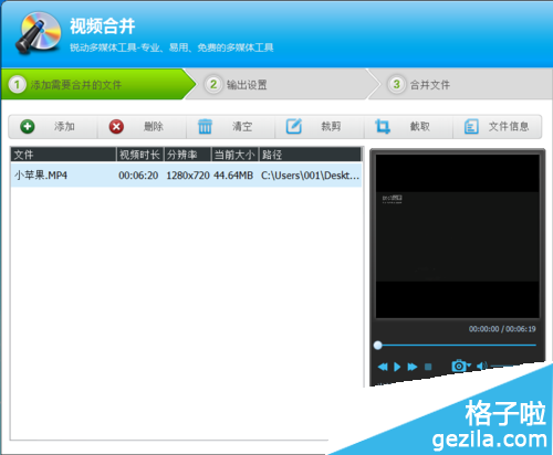 在视频工具菜单中点击【视频合并】按钮,弹出视频合并对话框,如图所示: