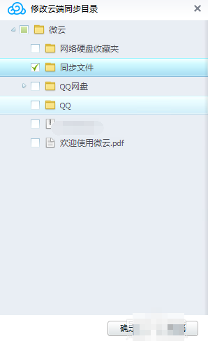 5、如图所示,这个弹框是修改云端同步目录页面,如果是全部同步的话,默认全部勾选上即可。