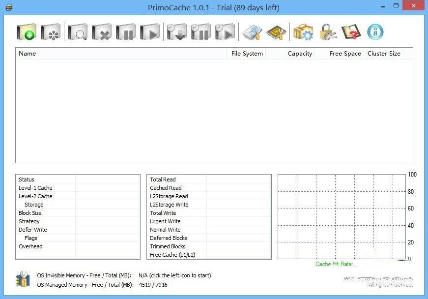 1、打开安装好的PrimoCache软件