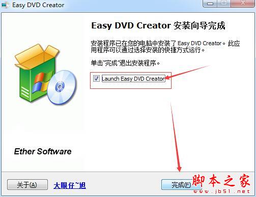 9、等待片刻即可完成安装,勾选“Launch Easy DVD Creator”,点击完成,即可退出安装向导,并启动软件程序