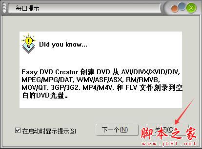 10、此时软件的界面会弹出“每日提示”,可将“在启动时显示提示”勾掉,之后便不会有此提示了,点击关闭,进入软件操作界面