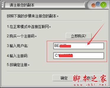 12、将本站点提供的注册码及用户名输入到对应的位置上去,点击确定