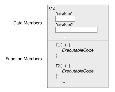 成员包括数据成员(Data members)和函数成员(Function members)。数据成员用于存储数据,函数成员用于执行代码。