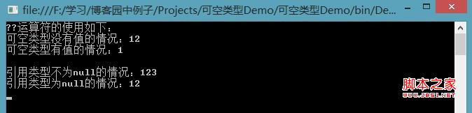 ??操作符也就是"空合并操作符",它代表的意思是两个操作数,如果左边的数不为null时,就返回左边的数,如果左边的数为null,就返回右边的数,这个操作符可以用于可空类型,也可以用于引用类型,但是不能用于值类型(之所以不能应用值类型(这里除了可空类型),因为??运算符要对左边的数与null进行比较,然而值类型,不能与null类型比较,所以就不支持??运算符),下面用一个例子来掩饰下??运算符的使用(??这个运算符可以方便我们设置默认值,可以避免在代码中写if, else语句,简单代码数量,从而有利于阅读。)