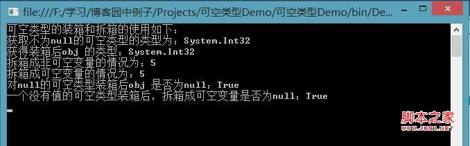 Console.WriteLine("获取不为null的可空类型的类型为:{0}",nullable.GetType());