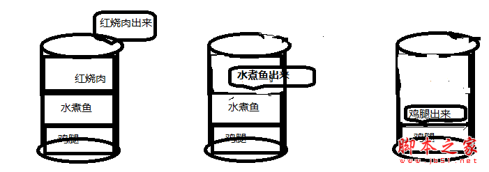 老样子,什么是栈, 所谓的栈是栈(Stack)是操作限定在表的尾端进行的线性表。表尾由于要进行插入、删除等操作,所以,它具有特殊的含义,把表尾称为栈顶(Top) ,另一端是固定的,叫栈底(Bottom) 。当栈中没有数据元素时叫空栈(Empty Stack)。这个类似于送饭的饭盒子,上层放的是红烧肉,中层放的水煮鱼,下层放的鸡腿。你要把这些菜取出来,这就引出来了栈的特点先进后出(First in last out)。 具体叙述,加下图。