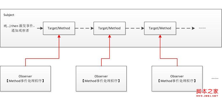 以上就是一个最最原始的含有事件类的定义。外部对象可以注册Subject对象的XX事件,当某一条件满足时,Subject对象就会激发XX事件,所以观察者作出响应。
