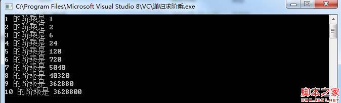 Console.WriteLine("{0} 的阶乘是 {1}",i, Factorial(i));