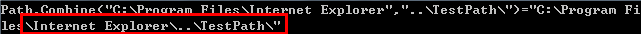 Console.WriteLine(string.Format("Path.Combine(\"{0}\",\"{1}\")=\"{2}\"", absolutePath, relativePath, splicingResult));