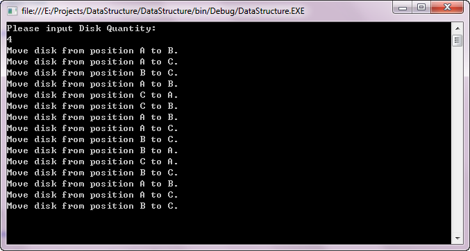 hanoi.MoveDisk(DiskQuantity, "A", "B", "C");