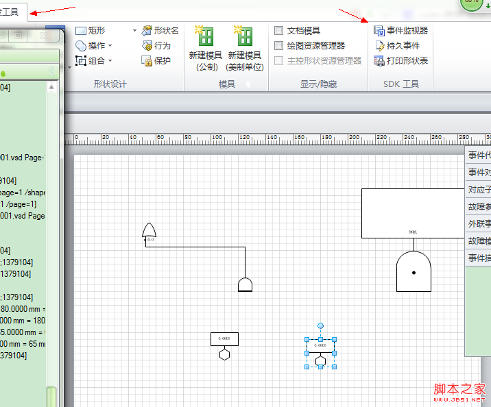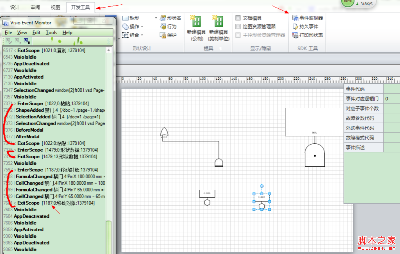 2.不过visio毕竟是微软的产品,做的就是好。它对程序运行动态中的很多过程进行了定义和监视,有一个对Scope的监视,比如粘贴,复制,删除,移动对象,形状数据更改都对应一个Scope对象,都有唯一的scopeId(Scope的具体定义就不细说了,具体看开发文档)。值得一提的是,这里每个操作的对应Scope的信息我不是从开发文档看的,而是使用Visio里面提供的开发工具(需要在设置里面选择该项功能才有)一个个操作观察的,具体看图