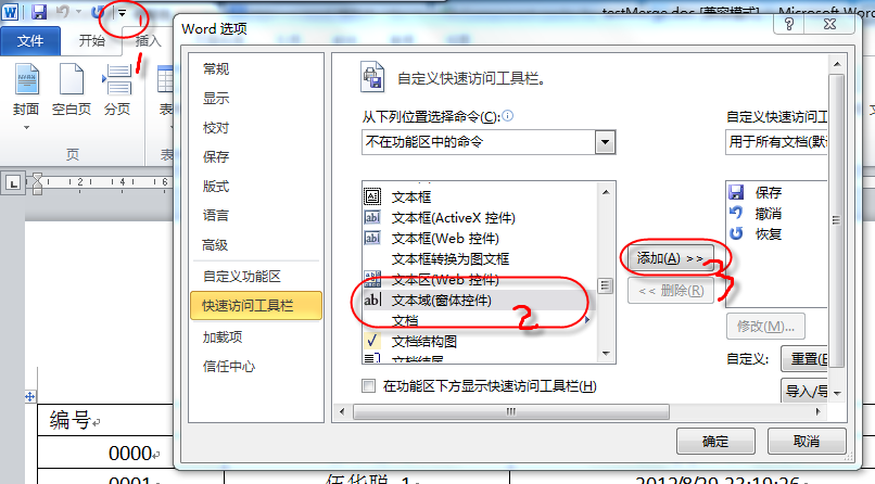 一种是在Word的自定义快速访问工具栏上添加其他命令,如下步骤所示