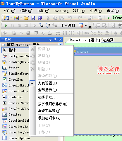 右键单击工具箱中任意一个控件,弹出右键菜单如下: