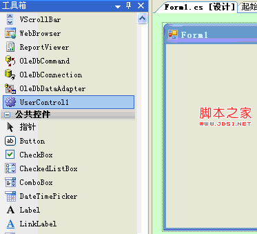 返回vs编辑器,可看到工具箱中多出了一个UserControl: