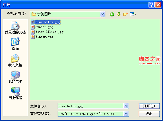 ofdPic.Filter = "JPG(*.JPG;*.JPEG);gif文件(*.GIF)|*.jpg;*.jpeg;*.gif";