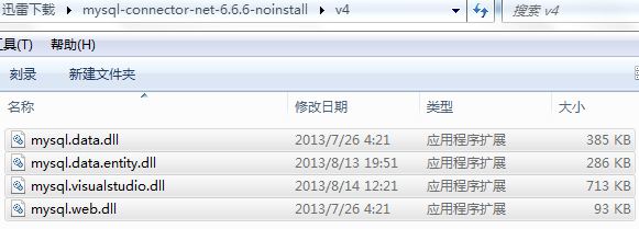 2、解压缩刚才下载的mysql-connector-net-6.6.6-noinstall.zip文件,里面有几个版本选择,在这里我选V4,