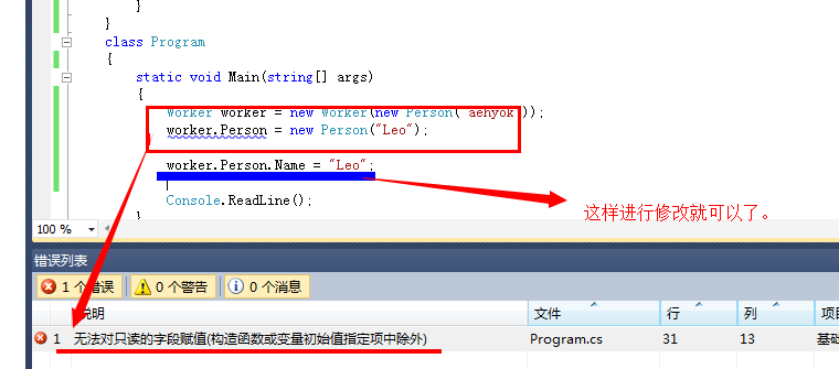 Person实例 name 在构造函数中被赋值后就不可变,下面的代码在编译后会报错