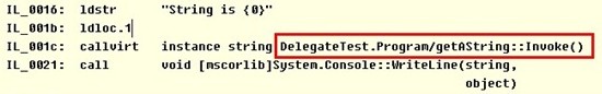 委托虽然看起来像是一种类型,但其实定义一个委托,是定义了一个新的类。下面这行代码,定义了一个委托,使用ILDasm.exe查看其生成的IL代码如图所示: