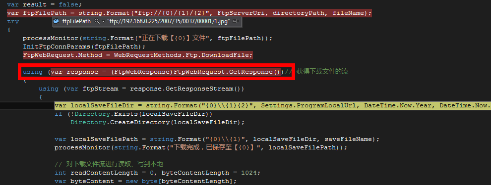 在通过程序进行访问,可以看到已经获得到了文件流信息。