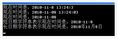 Console.WriteLine("短日期字符串表示现在时间是:{0}", DateTime.Now.Date.ToShortDateString());