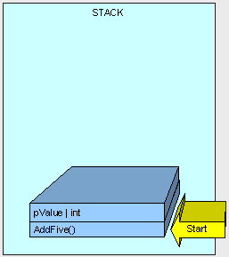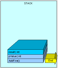 当线程开始执行AddFive方法的时候,参数被分配到栈上,如图8所示: