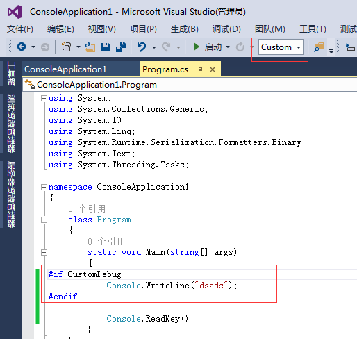 #if CustomDebug Console.WriteLine("dsads"); #endif