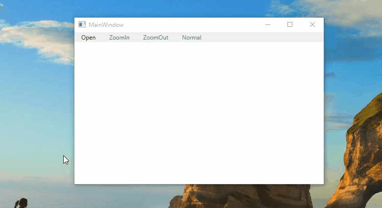 <MenuItem Header="_ZoomOut" Command="{Binding ZoomCommand}" CommandParameter="ZoomOut"/>