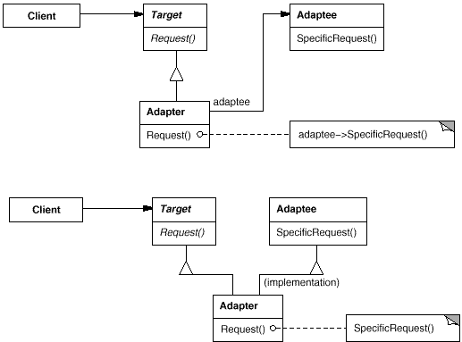 (仅适用于对象Adapter )你想使用一些已经存在的子类,但是不可能对每一个都进行子类化以匹配它们的接口。对象适配器可以适配它的父类接口。