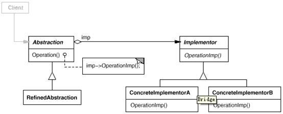 你不希望在抽象和它的实现部分之间有一个固定的绑定关系。例如这种情况可能是因为,在程序运行时刻实现部分应可以被选择或者切换。
