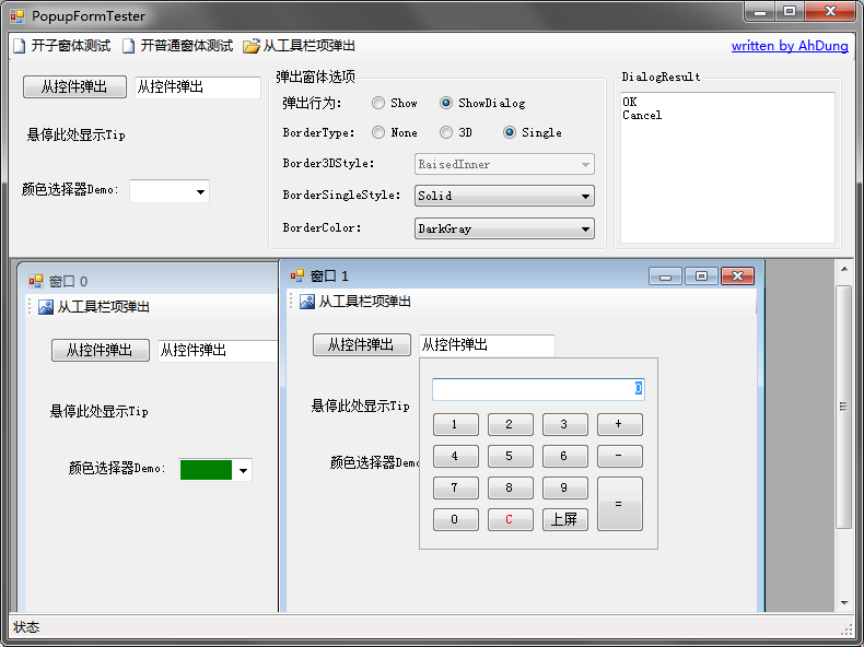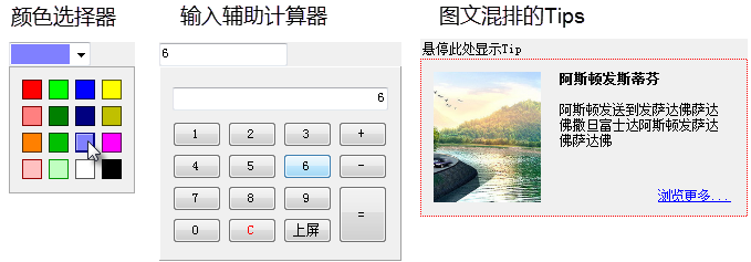 简单体验了一下,的确是了不起的创造。原理是利用ToolStripControlHost可以承载自定义控件的这一能力,让下拉式控件ToolStripDropDown将任何自定义控件像右键菜单那样弹出来(别忘了右键菜单ContextMenuStrip就是继承自ToolStripDropDown),这样就等于把菜单作为一个容器,可以弹出任何或简单或复杂的控件组合,同时又具有菜单具有的便捷性,召之即来挥之即去。当时了解到这方案的时候真挺开心,正是我想要的效果,感觉这下好了,不用瞎费劲自己造了。