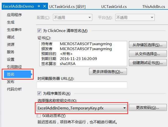 通过设置程序的属性中的签名页,让VS自动生成一个签名即可(需设置密码)