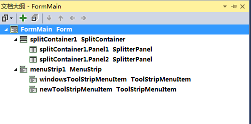 要实现左右布局,并且能够支持可动态调整左右占比的功能,非SplitContainer控件莫属了,如果不了解该控件用法请自行在网上查找相关资料,我这里就不作说明,如果要显示WINDOWS已打开的子窗口情况,同样也需要用到MenuStrip控件,
