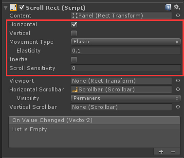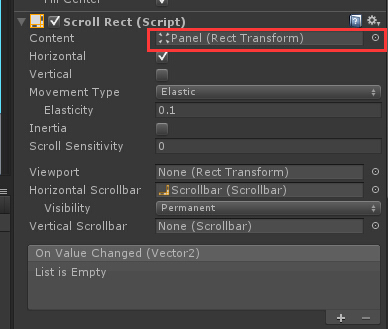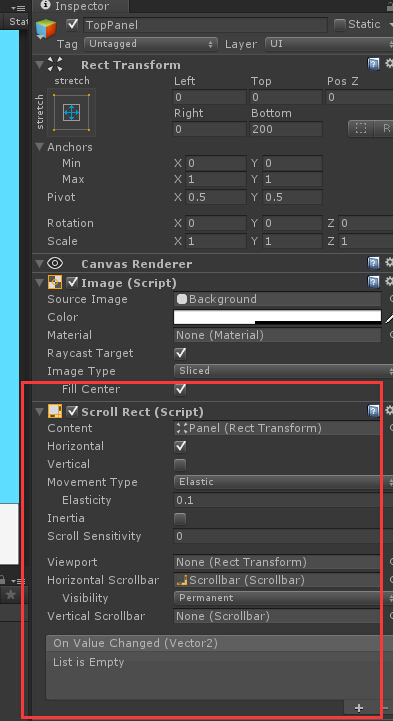 2.在TopPanel上添加ScrollRect脚本,用于滑动