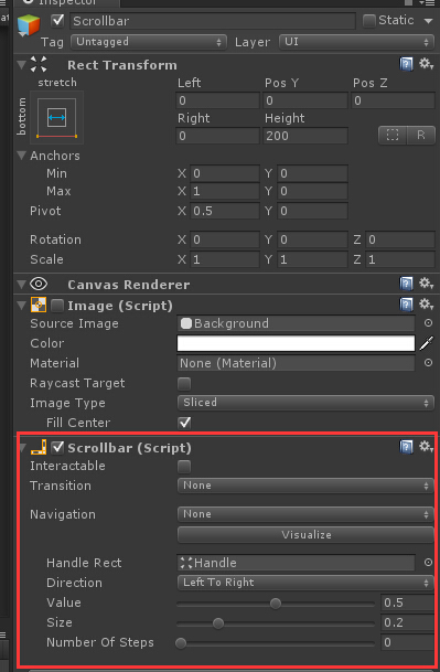 5.为ScrollRect添加ScrollBar滚动条,直接在空白处单机右键添加ScrollBar即可