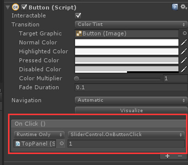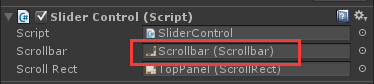 8.将SliderControl脚本挂在TopPanel上,并关联ScrollBar