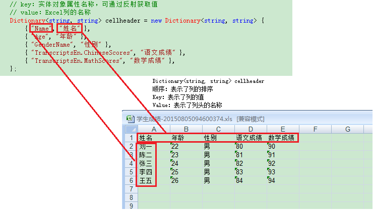 string urlPath = ExcelHelper.EntityListToExcel2003(cellheader, enlist, "学生成绩");