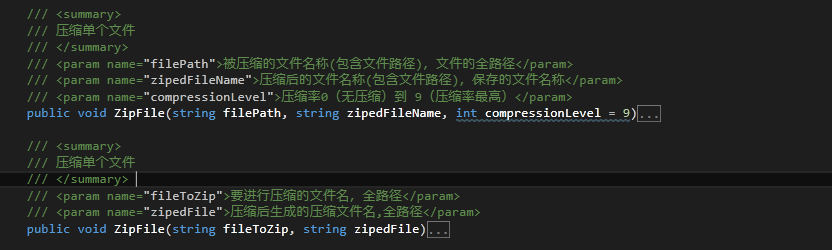 写了两个方法,可以指定压缩等级,这样你的压缩包大小就不一样了