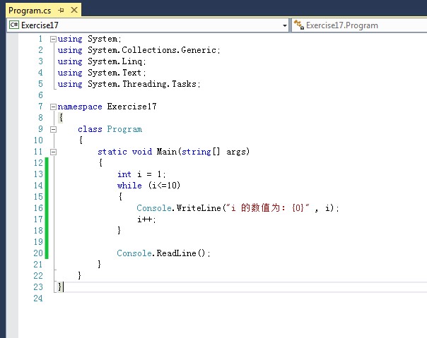 在这一节练习中,我们向大家介绍一下C#中的另一种重要的循环语句,for循环。