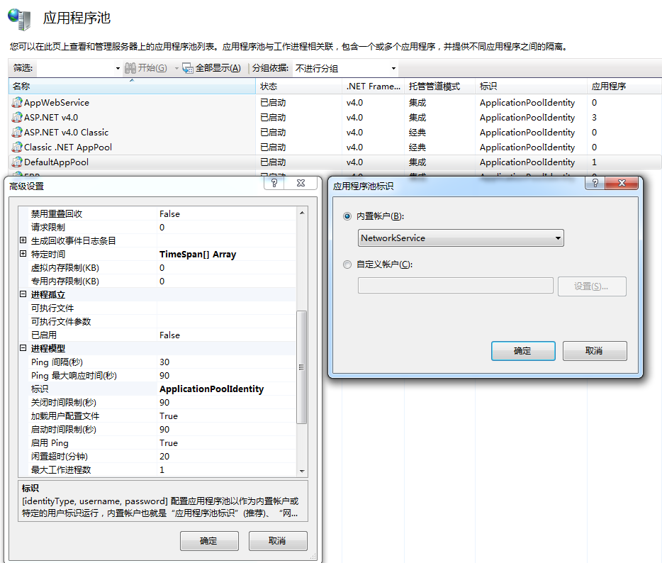 如果Office组件应用不是在本地程序而需要部署在IIS上,还需将应用程序的应用池的权限设置为如下图所示:程序应用池-->高级设置-->标识