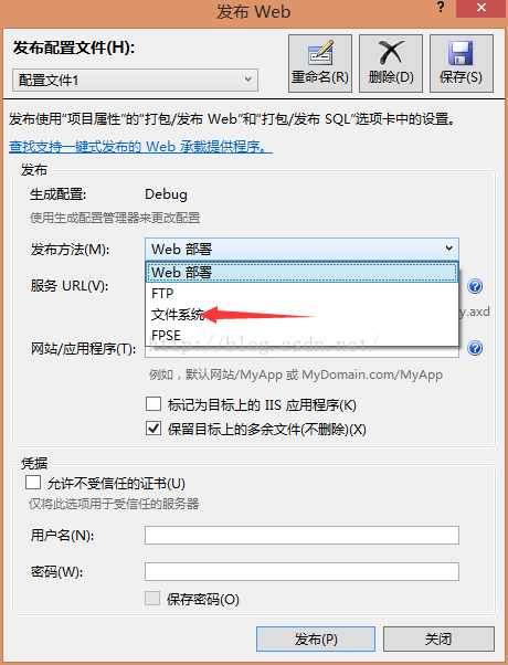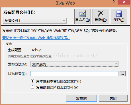 自己选择目标位置就可以了,不过我们要记住这个目标位置,这里我把它保存到D:\WebService这里了,点击“发布” 我们就算是发布好了。