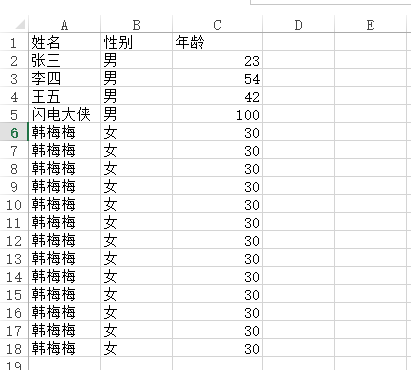这样就可以正常了,如果你的Excel列更多,可以适当调整宽度和高度。得到的结果如下