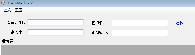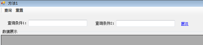 先简单说一下应用场景,现有一个C#客户端的查询界面,上方放置查询条件,下方放置查询结果。因为实际情况中查询条件可能占了好几行的位置,所以希望在界面上默认只保留一行最主要的查询条件,并在右侧有一个“展开/收起”功能。