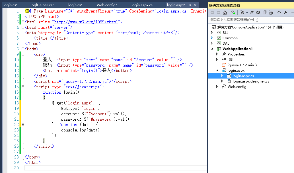C#登入例子--第一个程序