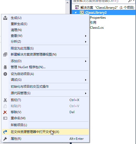然后 通过 在文件资源管理器中打开文件夹找到生成的dll文件