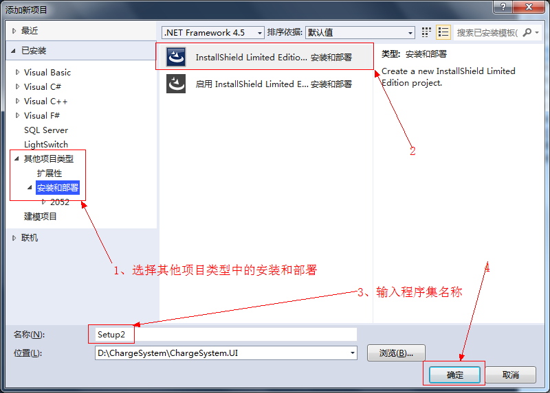 InstallShield安装完成后,执行以下步骤右键解决方案-->添加-->新建项目-->其他项目类型-->安装和部署,具体操作如下图: