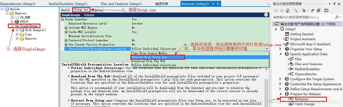上面的安装步骤执行完成后即可生成解决方案,但是生成的文件会放在DVD-5文件夹内,想要使用安装文件的话就必须拷贝整个文件夹否则安装会出错,这样内容很繁琐,而且给客户的安装体验度也很差,那应该有其它的解决办法吧,是的,如下图所示,我们将使用SingleImage的安装包,将所有文件集成到一个Setup.exe中,再次安装的时候只需要一个Setup.exe即可。