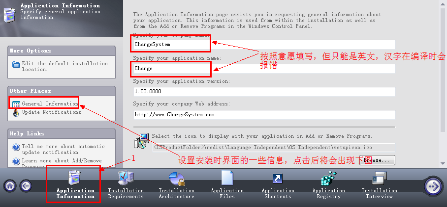 Application Information主要设置程序在安装时显示的有关程序的一些信息,如:程序的开发者、程序开发公司,程序安装图标和程序简介等。