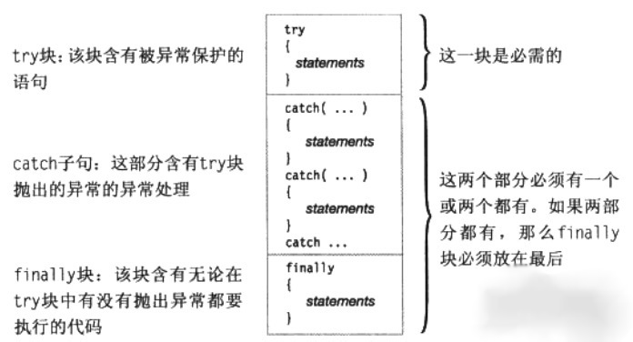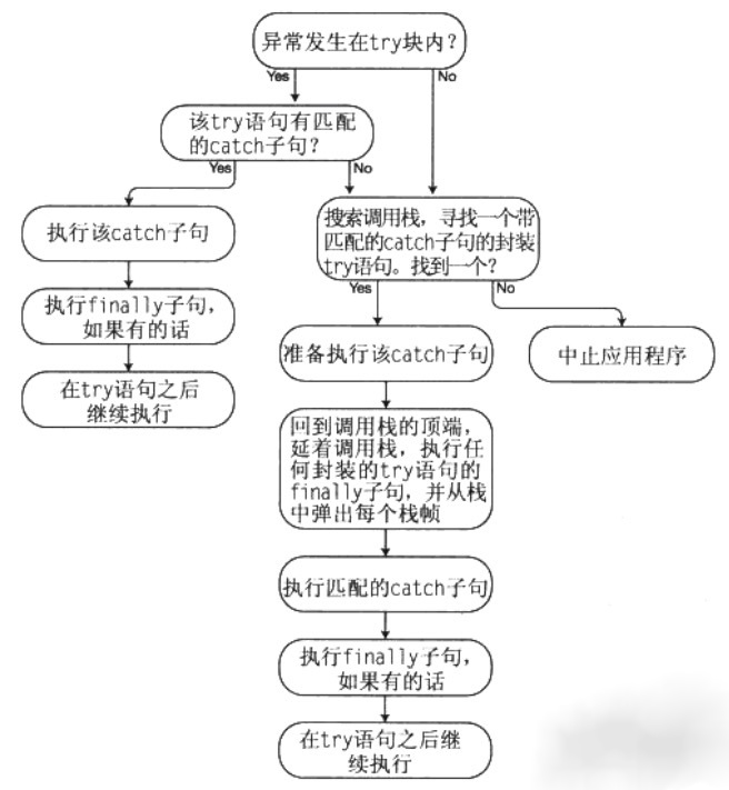 通过try catch finally三个关键字的一个语法结构图。finally是监听程序是否在try或者catch中执行